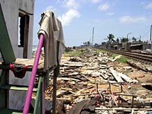 ![]() Destroyed settlement in Moratuwa. Most refugees in the camp had lived here.