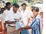 In February 2005, SECONDAID started its first livelihood recovery projects at two sites, a refugee camp in Moratuwa, near the capital Colombo and at the south coast town of Tangalle. In both locations, government and NGOs have provided some food, living allowances and temporary housing. Yet, there has not been any support to livelihood recovery. As a result m The list summarizes materials distributed as of April 30, 2005. It illustrates the type of businesses in need, the materials we supplied and how little start-up capital is typically required. In early April, during a business trip to Sri Lanka, SECONDAID team members Gero Leson, Bernd Frank and Gordon de Silva, who with his daughter Sonali had made the contacts and initiated the work, visited our project sites to see for ourselves whether our work has been effective and to discuss next steps. We were very impressed with the work our partners have done so far with limited funds and under difficult circumstances. We were also pleased with how effective our simple concept has been in allowing people to resume their work.We now feel confident that we can expand our work to include larger items and enterprises with our remaining funds and with future donations. A summary of our experiences and impressions follows. 1. Refugee Camp Moratuwa