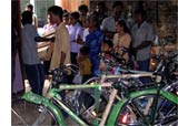 Since mid March we have supported about 65 families/businesses in Tangalle. One distribution of goods took place during our visit in early April. Many families received bicycles to give them back the mobility they need in their trade business. Others received sewing machines for the commercial sewing and repair of garments. We also helped a bicycle repair shop, a supplier of building materials, and several small restaurants. We visited several recipients who were using their sewing machines and bicycles from the first distribution in March. Particularly fish merchants, who buy fish right on the beach when the catch comes in need bicycles and cooling boxes to distribute the goods. Fish is available locally, brought in by the few boats, which survived the tsunami or by lagoon fishermen who require only small canoes.